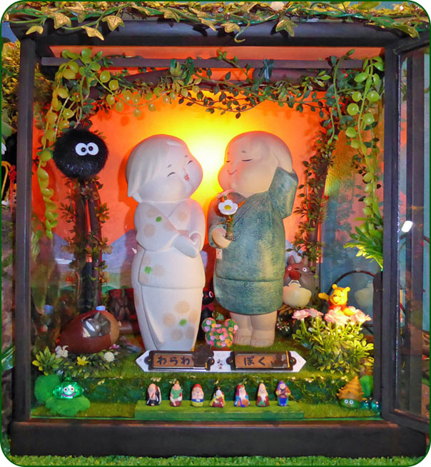 味気ない博多人形の世界が、自然たっぷりの秘密の空間に一変し、たくさんの妖精たちに囲まれ祝福を受けている…ような気がするでしょ。このゴチャゴチャ感は私の脳内構造そのもの。それがどう評価されようと、そんなことは知ったことではない。