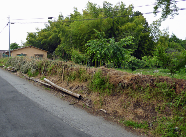 ということで、道路沿い(もちろん敷地側)に寄せて置いていたところ、草も積もれば山となる…のではなく、不安定な土手となったのであった。