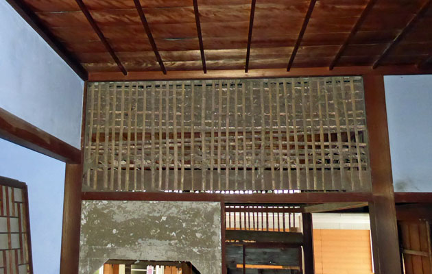 江戸長屋の間仕切りでも見かける白い壁。これは漆喰(しっくい)といい、基本的には竹を細い荒縄で格子状に組み、泥で固めてから白い石灰で覆ったものだ。見栄えもよく耐火性もあるが、内部が泥なので柔らかくすぐひびが入る。