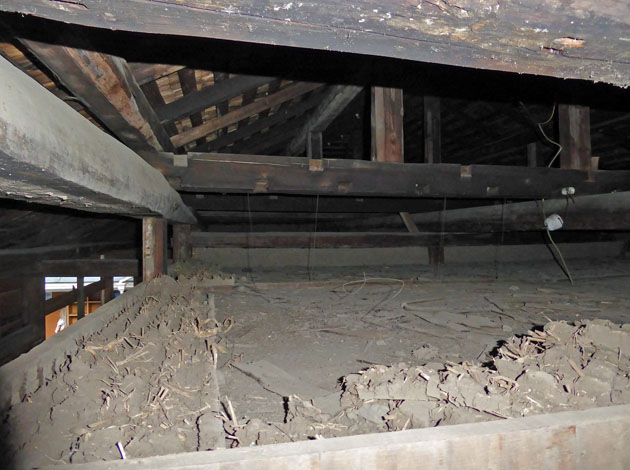 室内で最後に控えし大物…それが天井だ。一気に落としたいところだけど、天井裏の泥埃(どろぼこり)を見たら、とてもそんな気になれない。