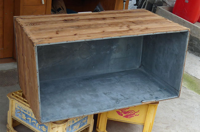 この2つの他に、現在3つ目の宝箱を肥料入れとして製作中。ところが、実は古い茶箱がまだ4〜5個残っているのだ。こうなると用途を考えるのも一苦労だネ。