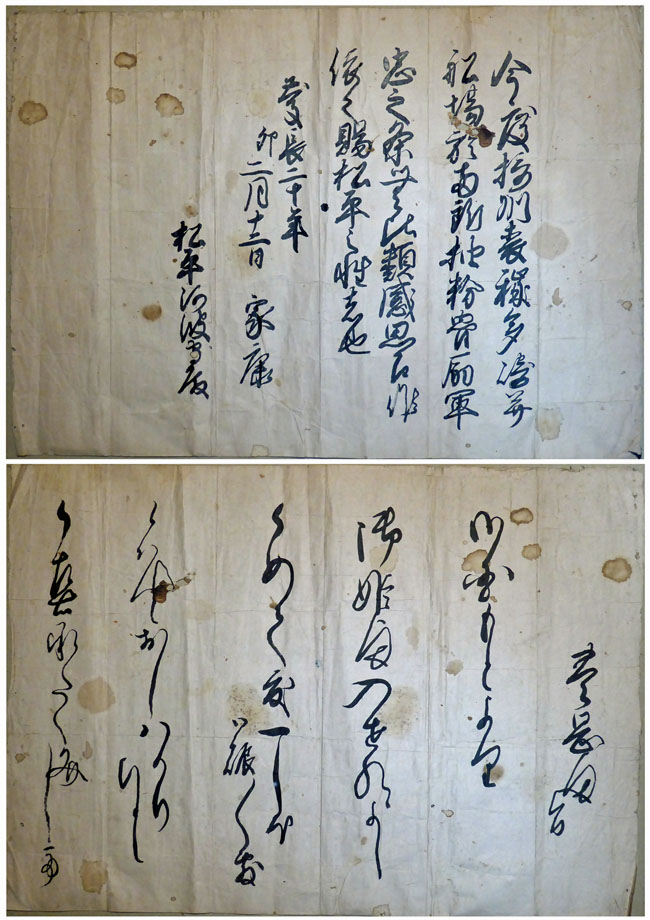 内容を解読できないのが残念だが、表裏に書かれているのが腑に落ちない。こんな偉いお方が、用紙をケチるようなことをするのだろうか?
