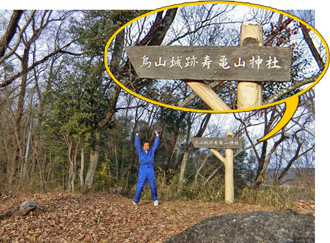 先祖代々の例の紅葉の木の向かい側には、少々大袈裟な感じの『毘沙門山城山遊歩道』の案内板がある。この「城山」というのは、山頂から尾根伝いに進むと烏山城址(←現在は石垣が少し残っているだけ)へ続いているという意味だ。