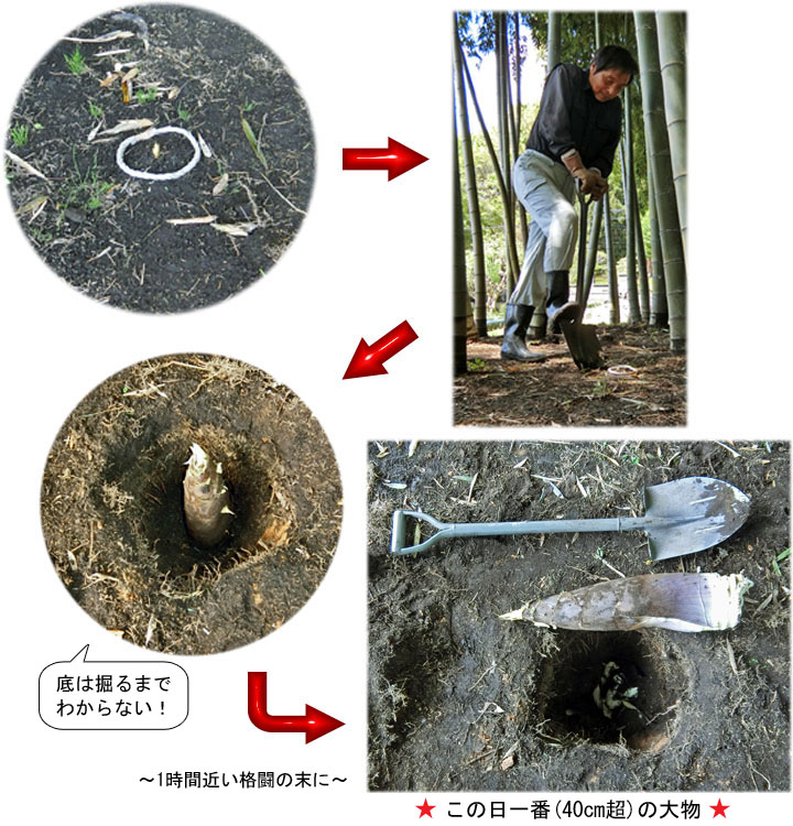 でも、現在の私にとっては「春はタケノコ」でしかない。正確には「春はタケノコ地獄」と称するほうが正しいだろう。何しろ、この季節には毎年200〜600本(←不作年/豊作年の差が激しい)のタケノコを掘らなければならない運命にあるのだ。