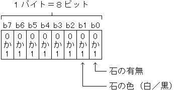 アセンブラの経験があると、このようなときは当然のごとくデータをビット単位に分けて使う。これ、すなわち2進数の世界である。